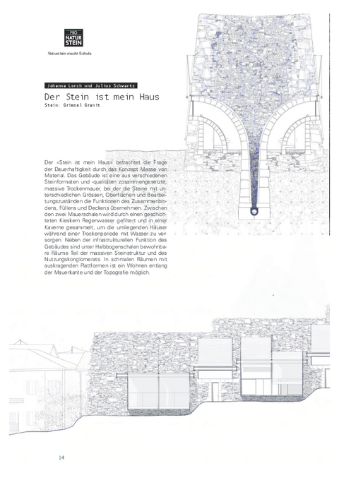 Naturstein macht Schule Johanna Lorch und Julius Schwartz Der Stein ist mein Haus Stein: Grimsel Granit Der «Stein ist mein Haus» betrachtet die Frage der Dauerhaftigkeit durch das Konzept Masse